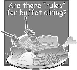The primary rule is to not overload your plate. No one cares how often you return to the buffet (relax . . . no one’s counting), but everyone will notice a seriously overloaded plate.